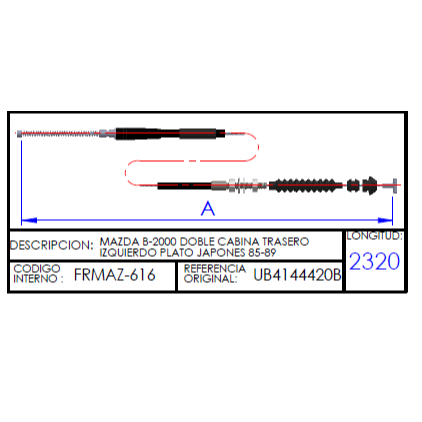 MAZDA B-2000 / B-2200 CABINA SENCILLA TRASERO IZQUIERDO PLATO JAPONES 86-92