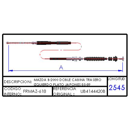 MAZDA B-2000 DOBLE CABINA TRASERO IZQUIERDO PLATO JAPONES 85-89